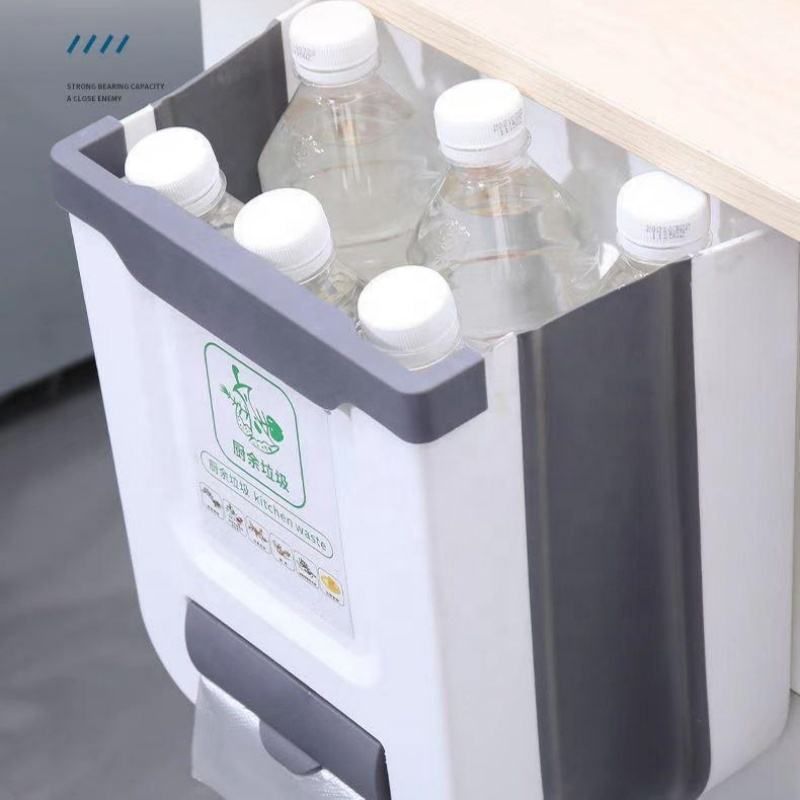 Kitchen Trash Can Wall-Mounted Foldable Cabinet Door Kitchen Waste Bin Car Hanging