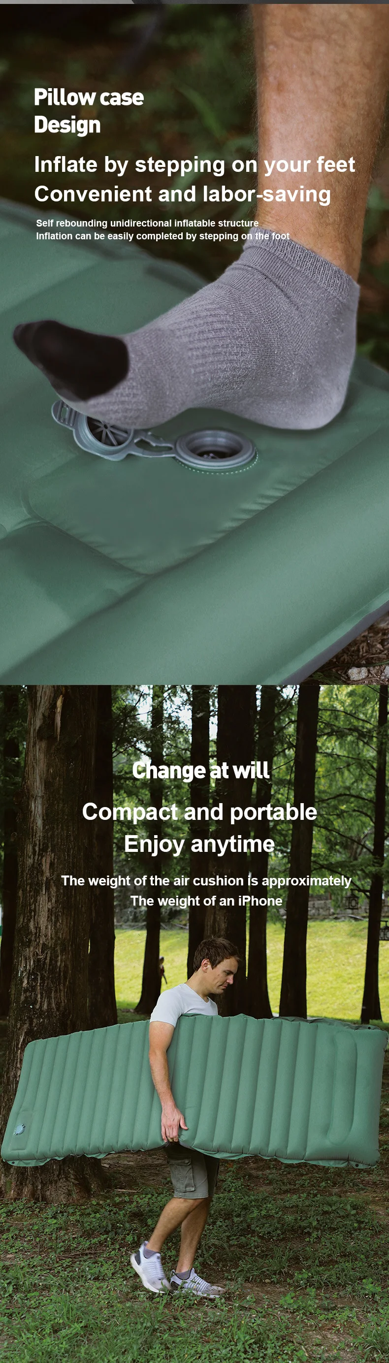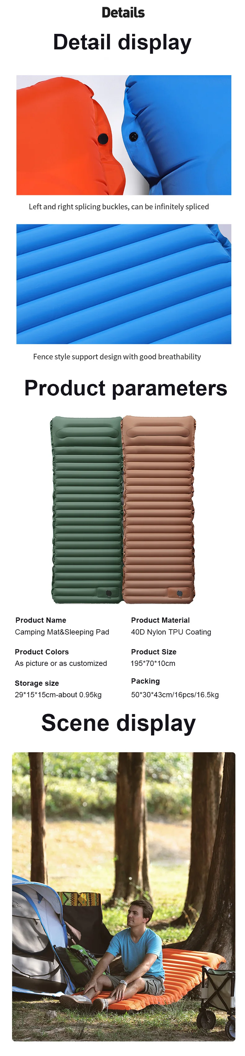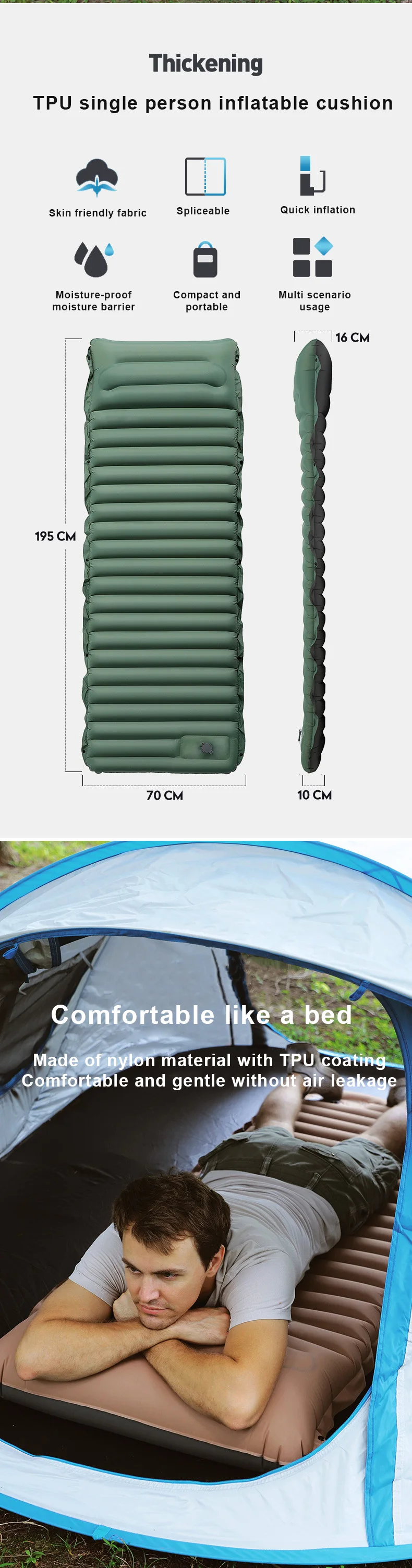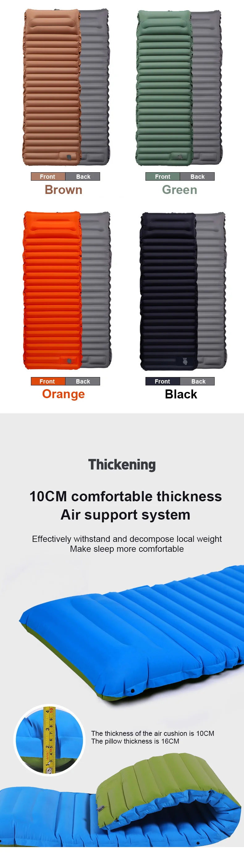 High quality 10cm thick inflatable camping sleeping mat pad automatically inflatable camping outdoor hiking inflatable air cushion