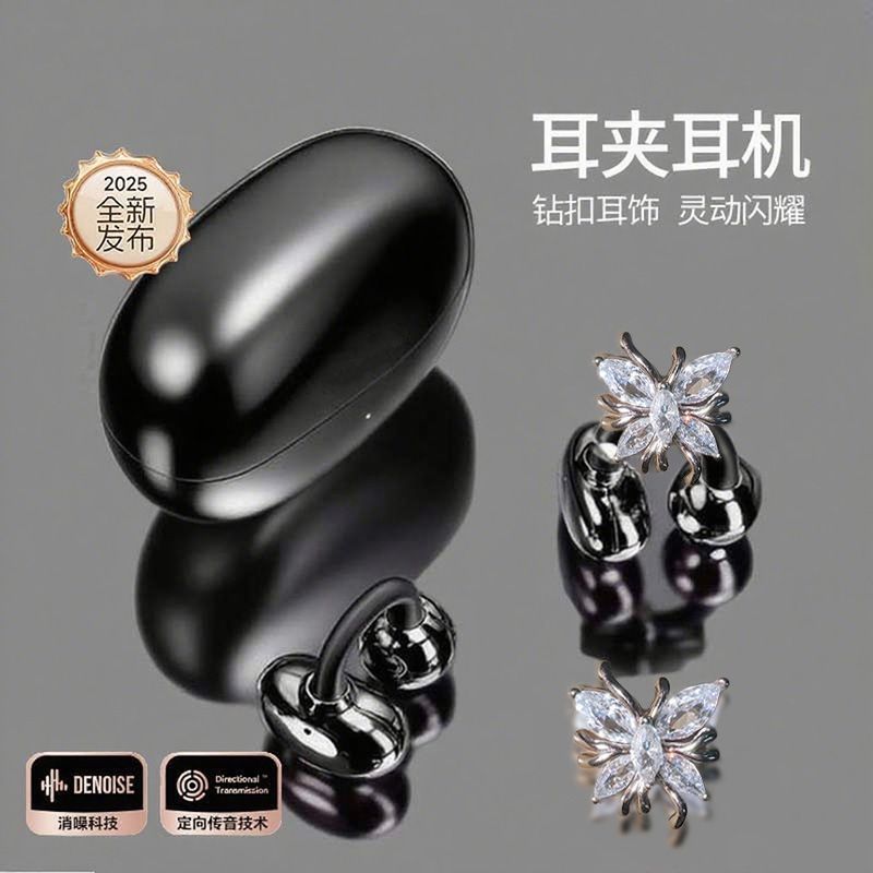Shadow Black【Comes with bowknot earrings】360° surround sound effect + Bluetooth 6.0 chip + skin-friendly silicone