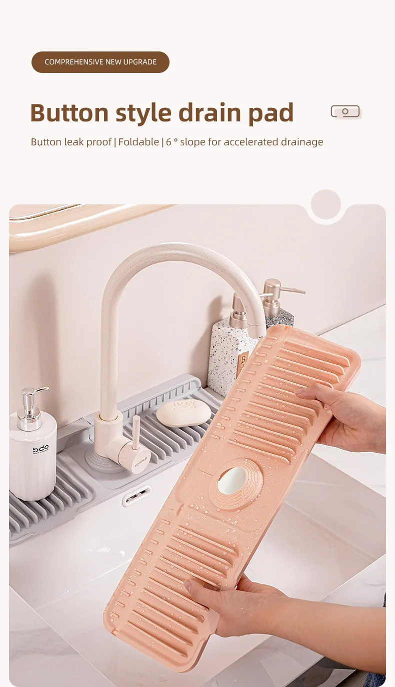 Button-style silicone faucet drain mat, kitchen sink storage mat, washbasin leak-proof and non-slip mat