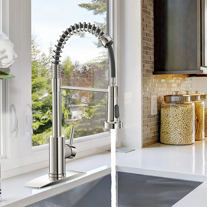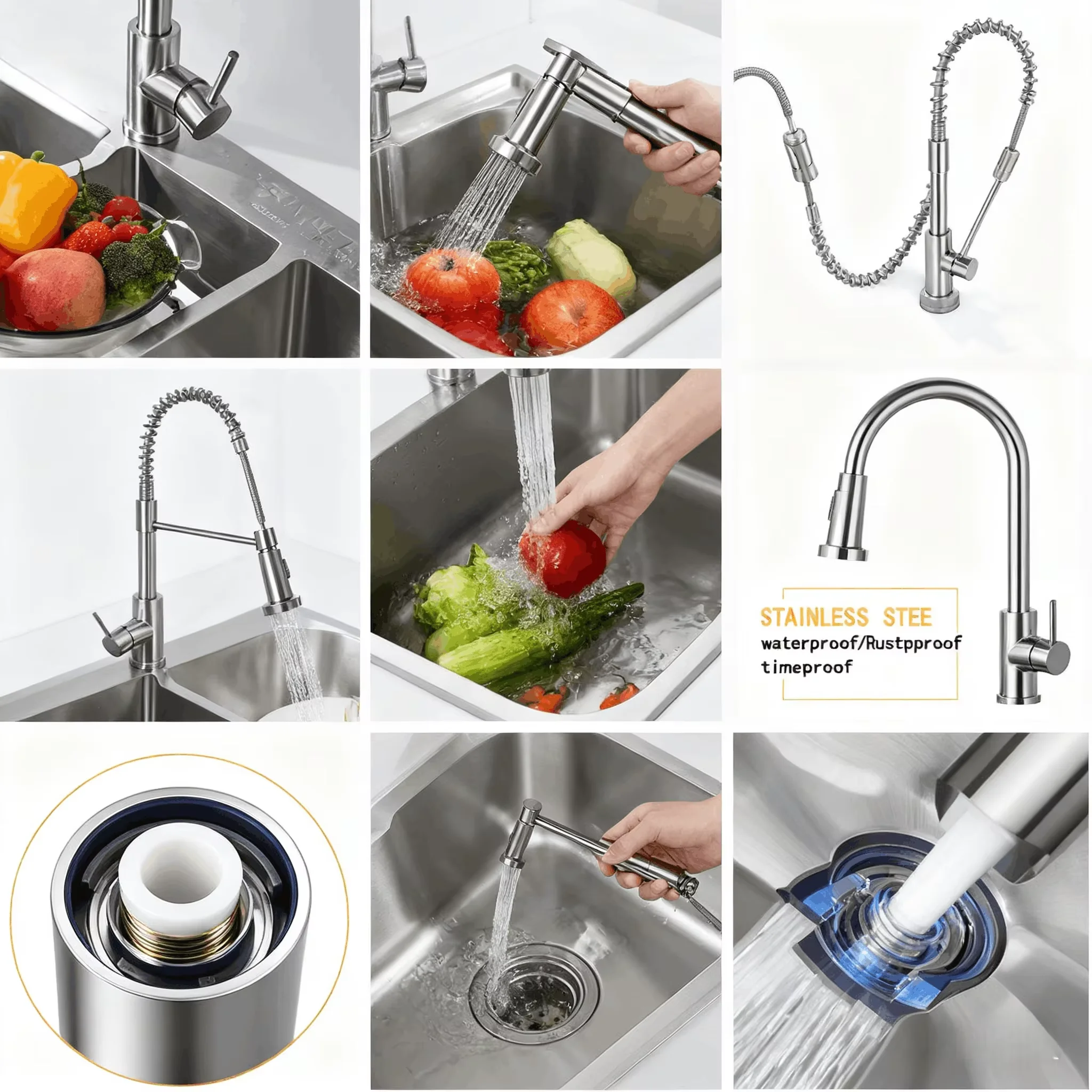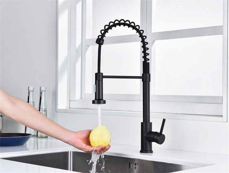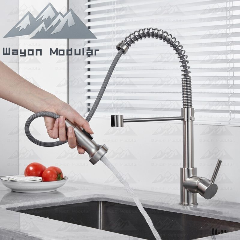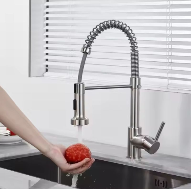 Hot and cold kitchen faucet 360 swivel spring pull down mixer stainless steel kitchen faucet high quality faucet