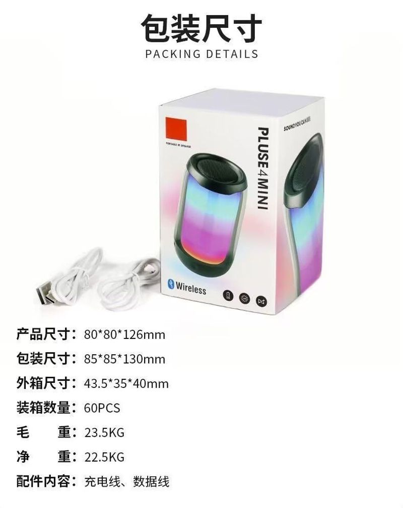 Hot-selling Pluse4 Mini Wireless Portable Home Subwoofer RGB Light Stereo Mini Bluetooth Speaker FM Tuning Support USB TF AUX