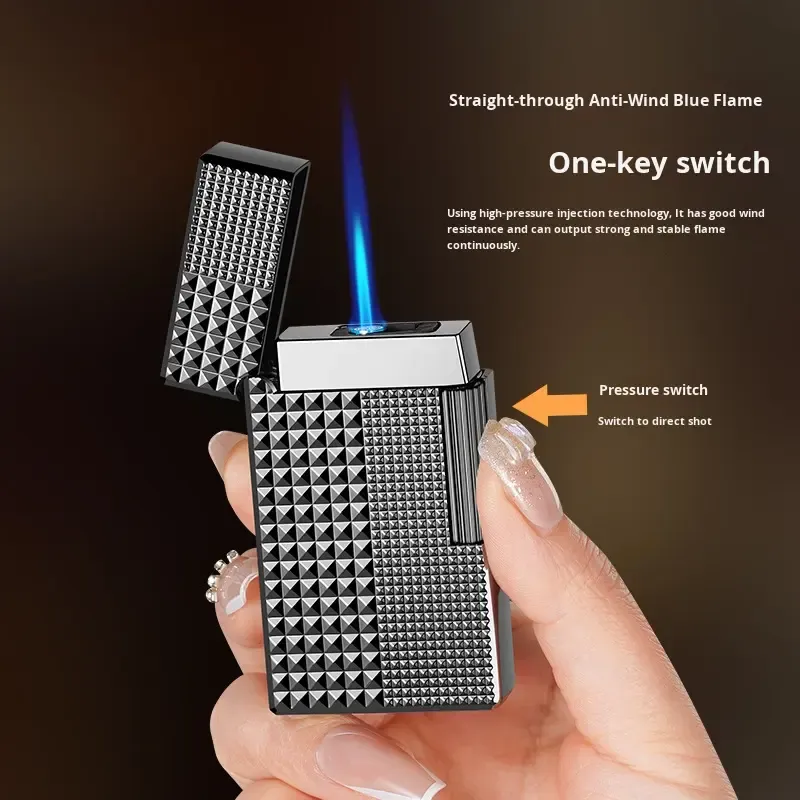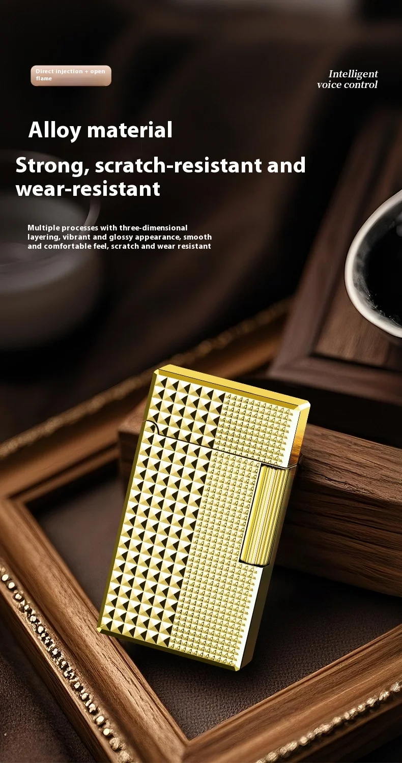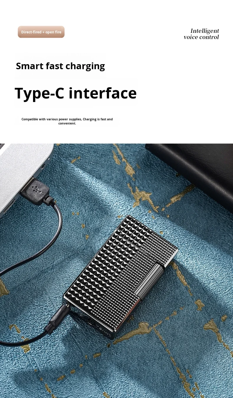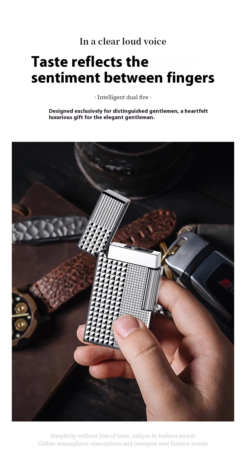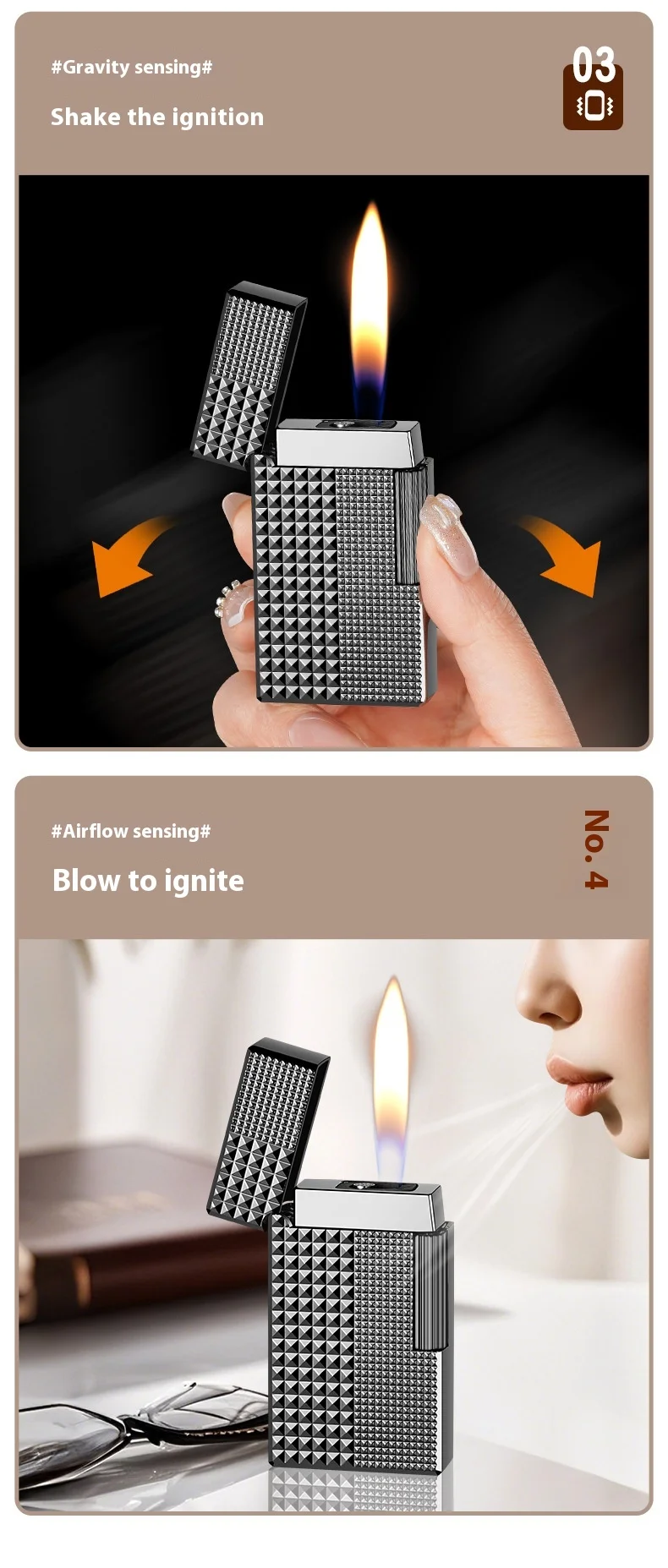 Modern metal dual-flame four-ignition dual-use gas electric hybrid lighter a gift for men featuring induction and voice control.