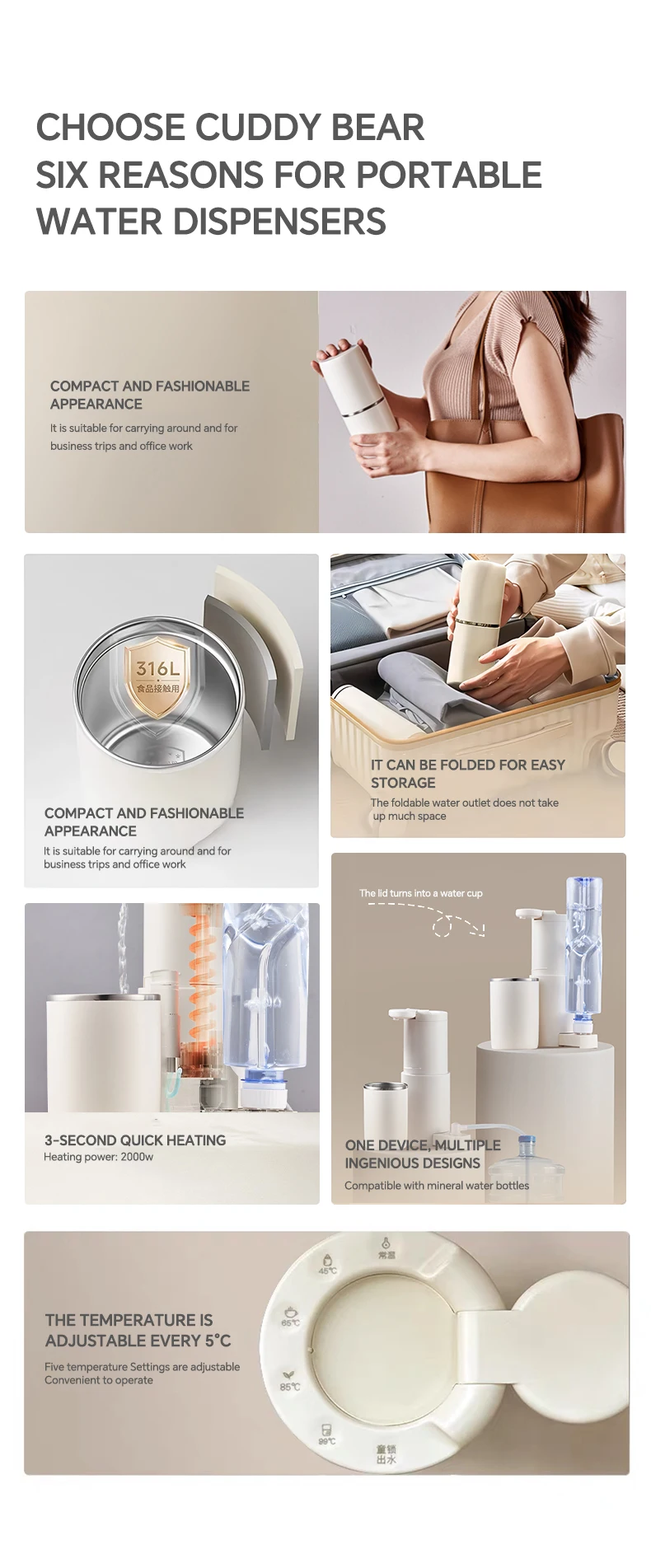 Small Portable Instant Hot & Cold Water Dispenser Plastic Household Desktop Kettle Direct Drink Travel Electric Cup Barrel