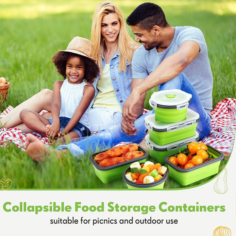 Collapsible silica gel lunch box, portable fresh-keeping microwave oven, safety plastic refrigerator, square food contain