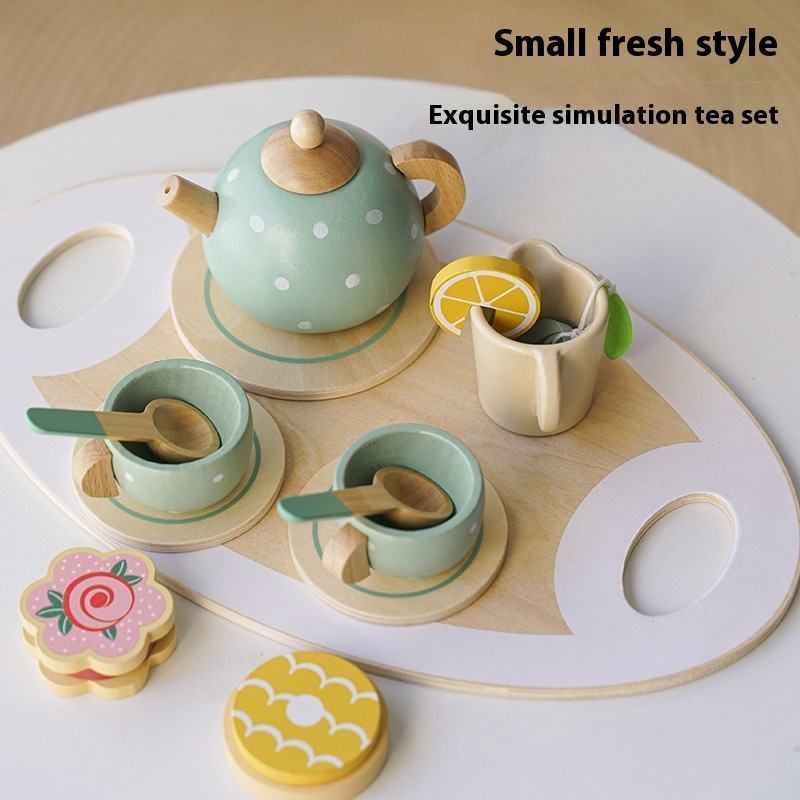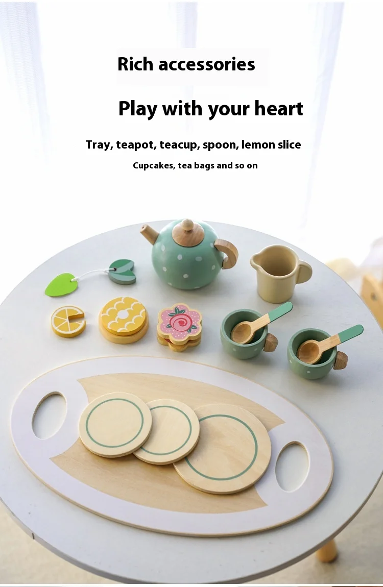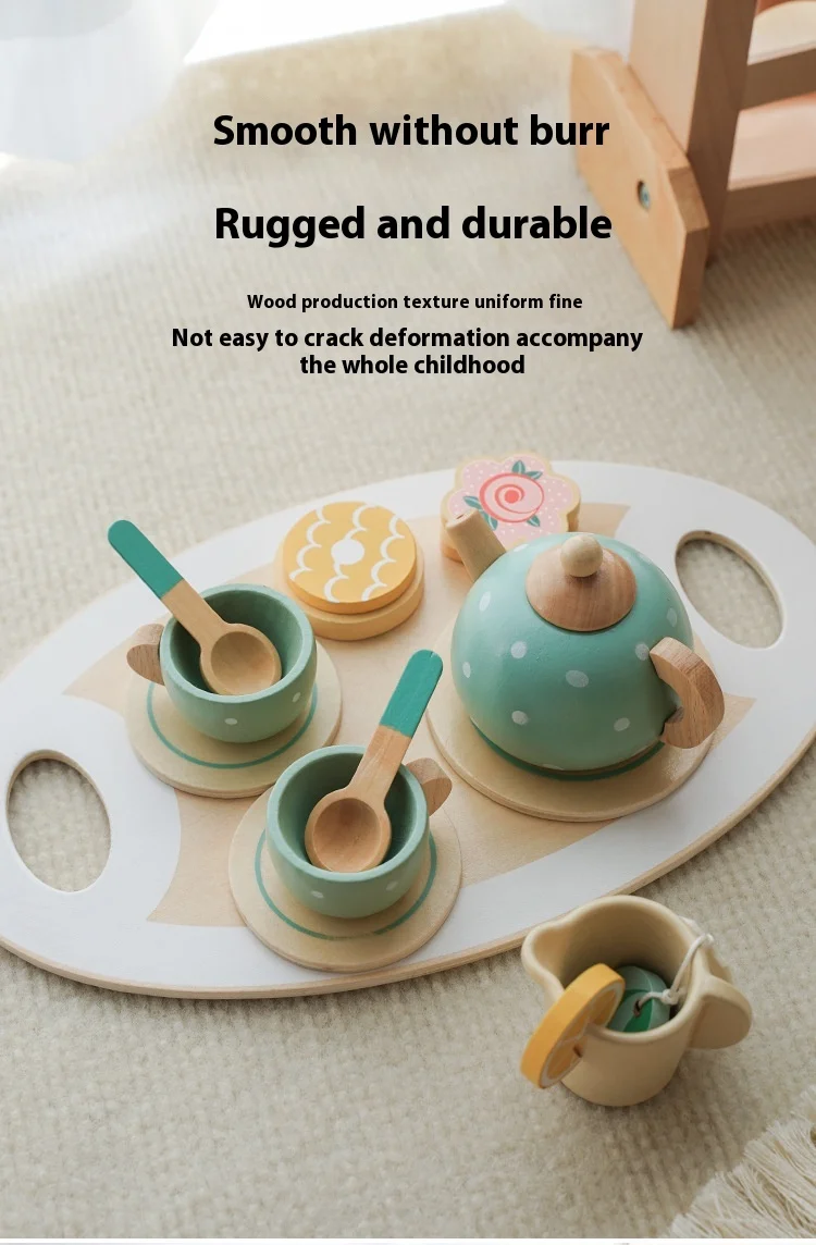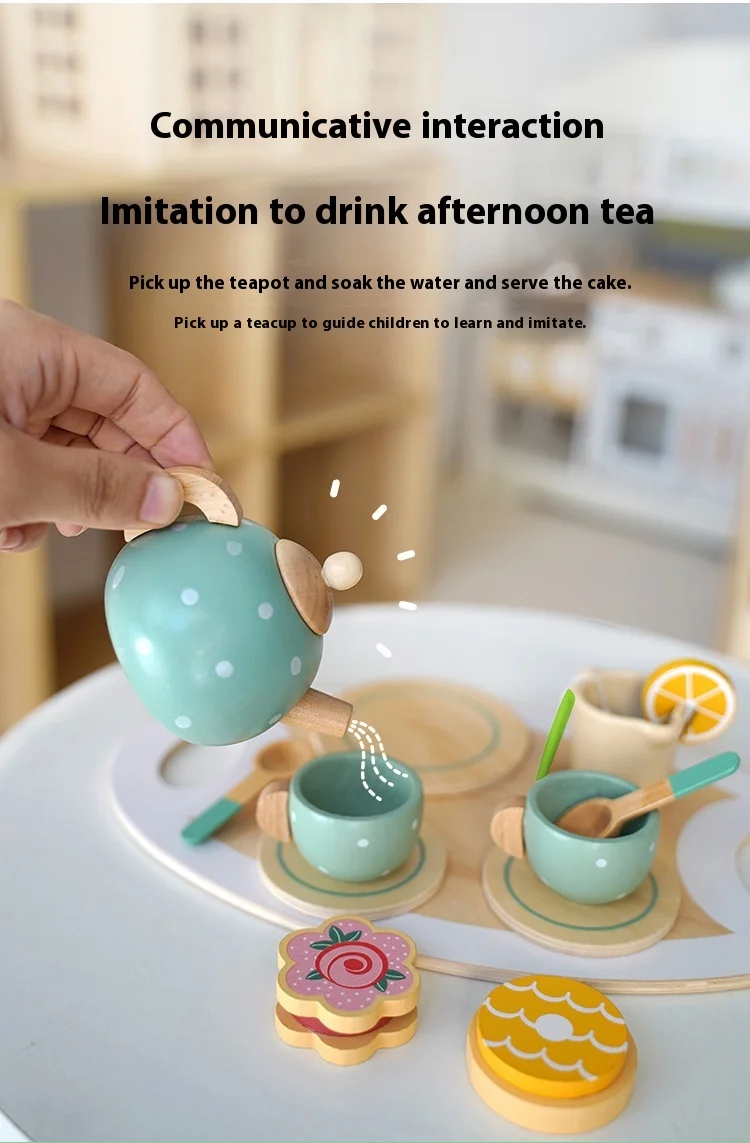 Wooden Cognitive Toy Kitchen Set for Early Childhood Education Children's Play Tea Time with Realistic Teapot and Cups