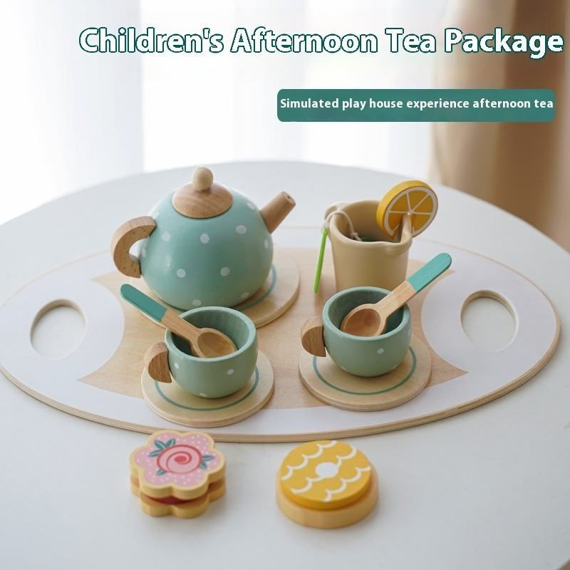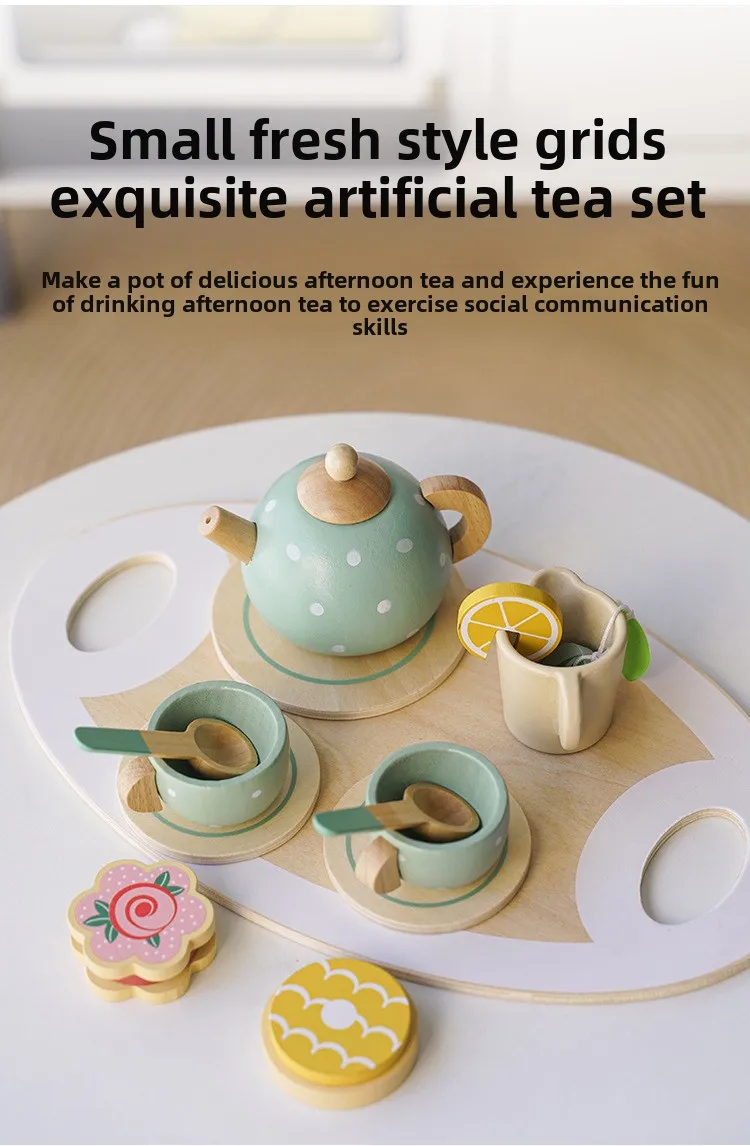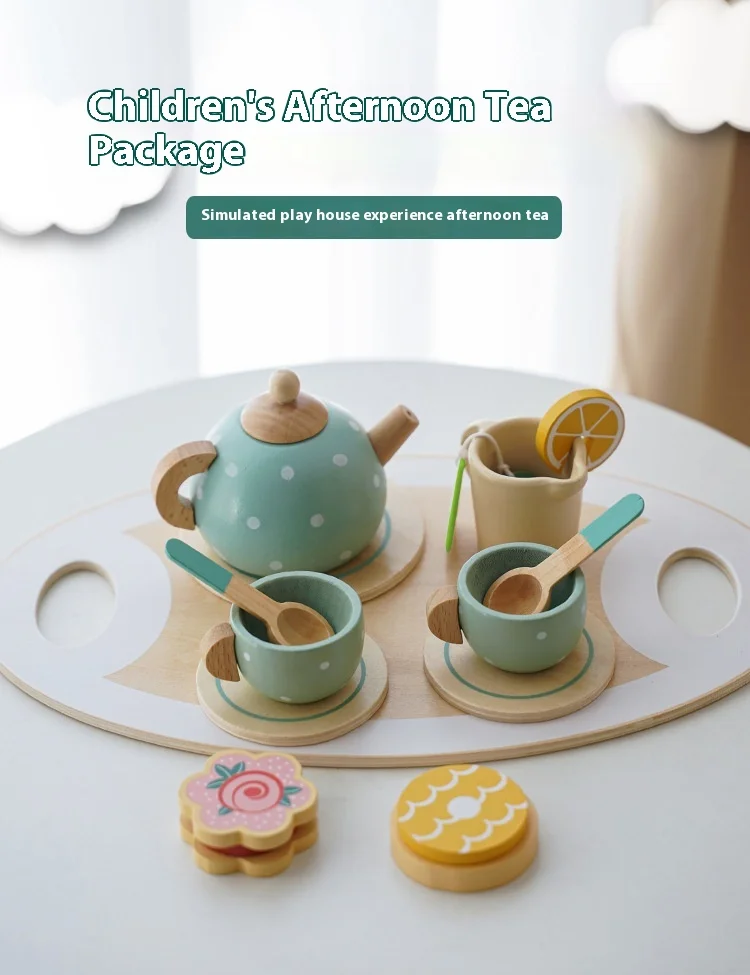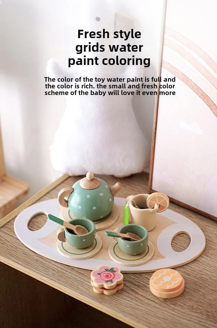 Wooden Cognitive Toy Kitchen Set for Early Childhood Education Children's Play Tea Time with Realistic Teapot and Cups